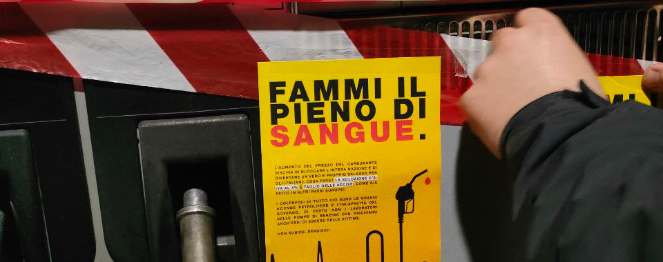 “Ci sembra assurdo che non ci sia stato ancora nessun intervento governativo per calmierare il prezzo del carburante – si legge in una nota del movimento – Ci viene da pensare che il silenzio del Governo sia voluto e che non ci sia alcun interesse nel salvaguardare cittadini ed imprese. L’aumento della benzina colpisce ogni settore produttivo, senza nessuna eccezione, e contribuisce all’aumento incontrollato dell’inflazione. Già stiamo assistendo a un razionamento di beni di prima necessità nei supermercati a causa del blocco dei trasporti ed è di questi giorni la notizia dei pescherecci fermi proprio perché impossibilitati a sostenere il costo del gasolio. I colpevoli di tutto ciò sono le grandi aziende petrolifere e l'incapacità del governo, non certo i lavoratori delle pompe di benzina che rischiano anch’essi di essere delle vittime. La situazione è intollerabile: si sta arrivando al punto di dover lavorare per poter pagare la benzina per recarsi al lavoro e la contrazione dei consumi è l’effetto più immediato. Le soluzioni ci sono: abbassamento iva dal 22% al 4% e taglio delle accise. Se non vogliamo veder crollare definitivamente la nostra economia, con una crisi sociale non gestibile, si attuino subito queste due misure. In caso contrario, sarà evidente a tutti che questo Governo è complice nel voler far fallire il paese”.