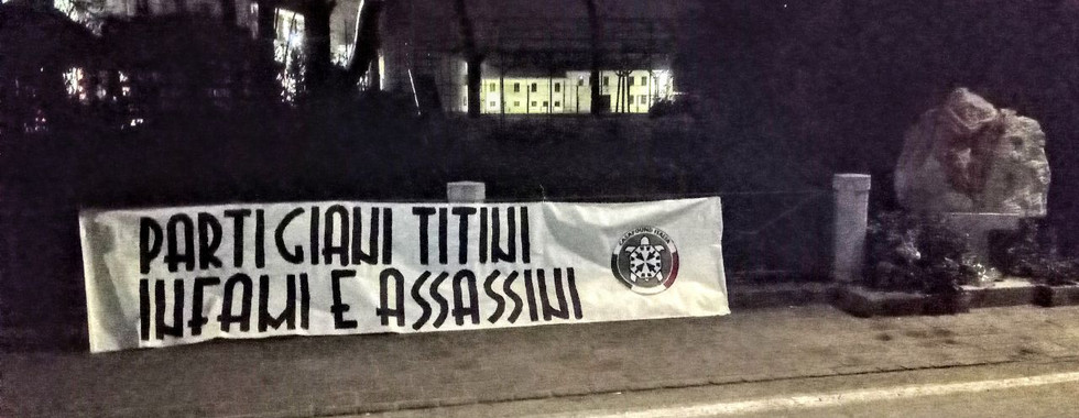 “Partigiani titini infami e assassini”: è questo il testo dello striscione apparso in oltre cento città italiane in occasione del Giorno del Ricordo, affiancato dalla 'tartaruga frecciata' simbolo di CasaPound Italia.