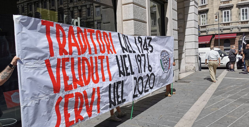 Traditori nel 1943, venduti nel 1976, servi nel 2020: è questo il messaggio che CasaPound Italia ha voluto lanciare a Trieste in occasione della cessione del Balkan.