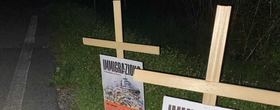 Trieste, 14 aprile - Croci e tombe disseminate sulle spiagge e nei luoghi simbolo del degrado nelle principali città italiane, tra i quali i capoluoghi del Friuli-Venezia Giulia, per simboleggiare le vittime dell'immigrazione clandestina: è l'azione shock di CasaPound che punta il dito contro chi avalla e, addirittura, incoraggia le partenze, che ha affisso anche striscioni con scritto “Immigrazion€: un business milionario”.